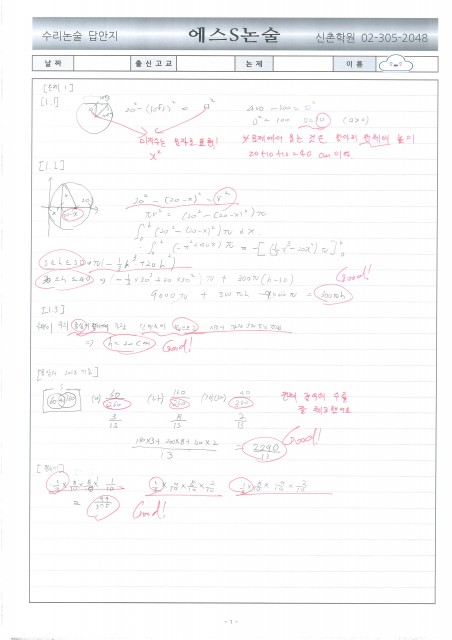 동성고 이OO 학생 수리논술 답안 및 첨삭
