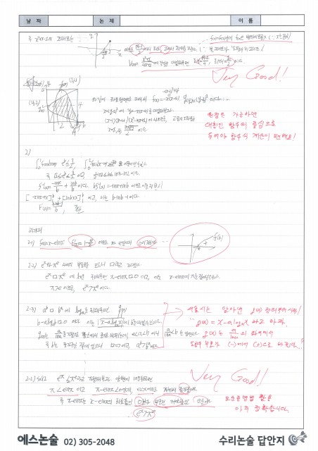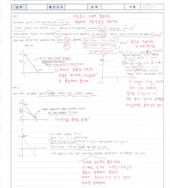 이화외고 김OO 학생 수리논술 답안 및 첨삭