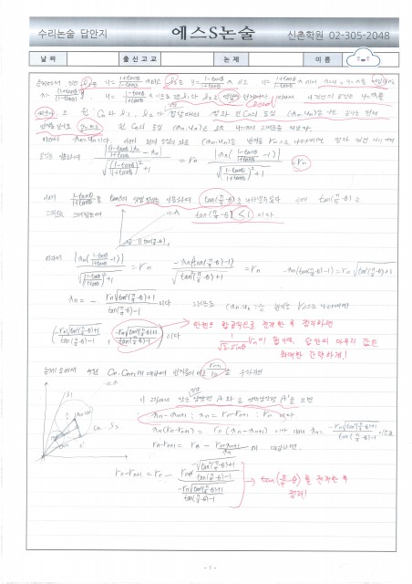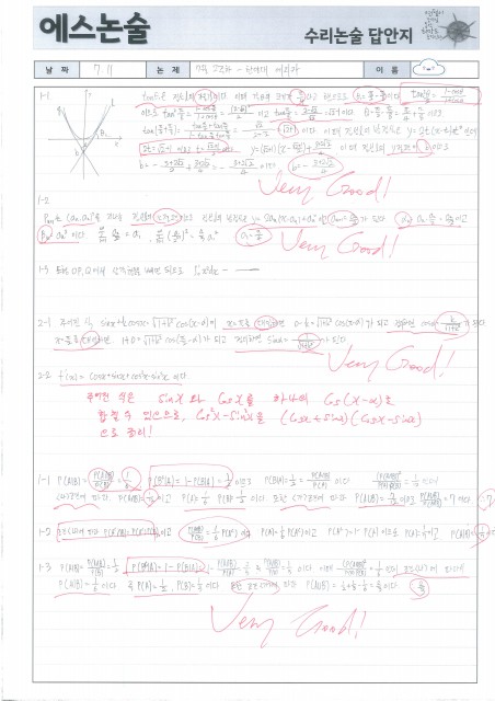 광성고 OO재 학생 수리논술 답안 및 첨삭